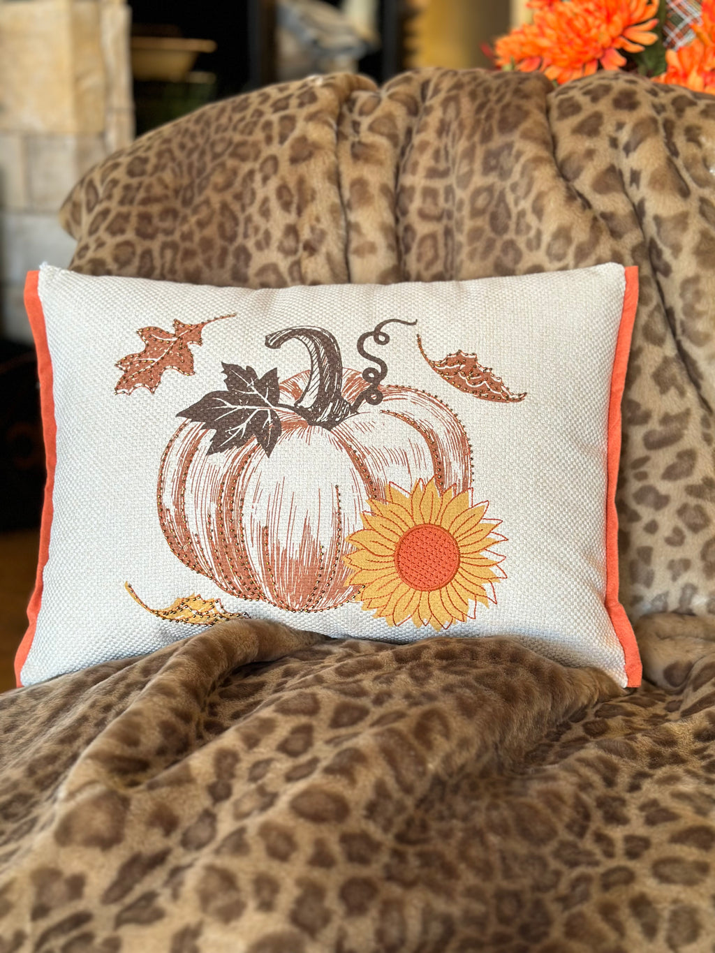 Warm Harvest Gold, Orange & Brown Pumpkin Fall Sunflower Pillow