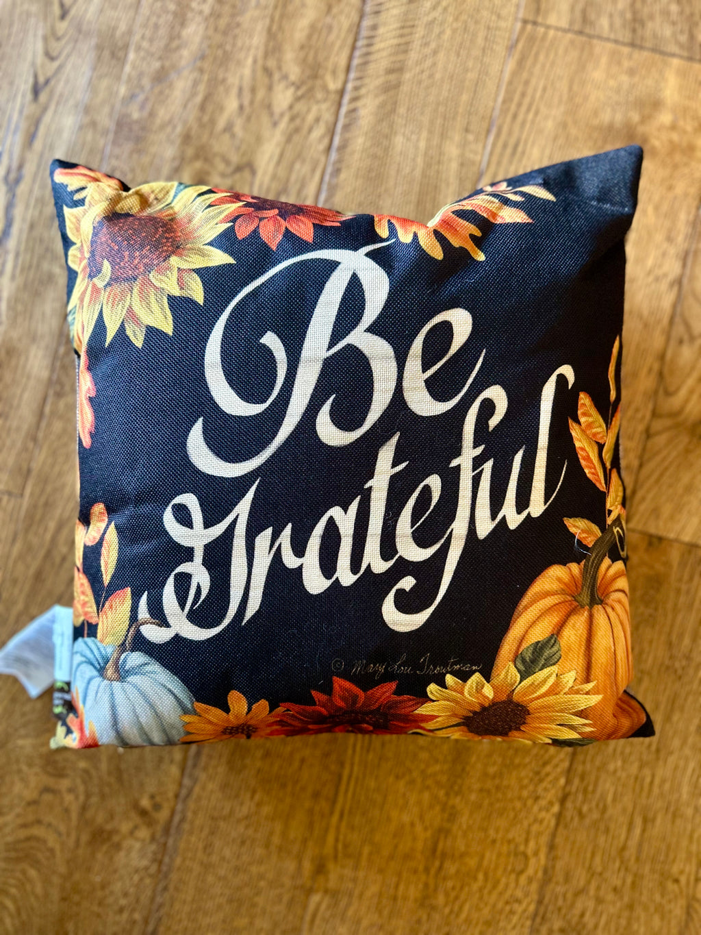 Fall Be Grateful Pumpkins Outdoor Pillow with Check Backside