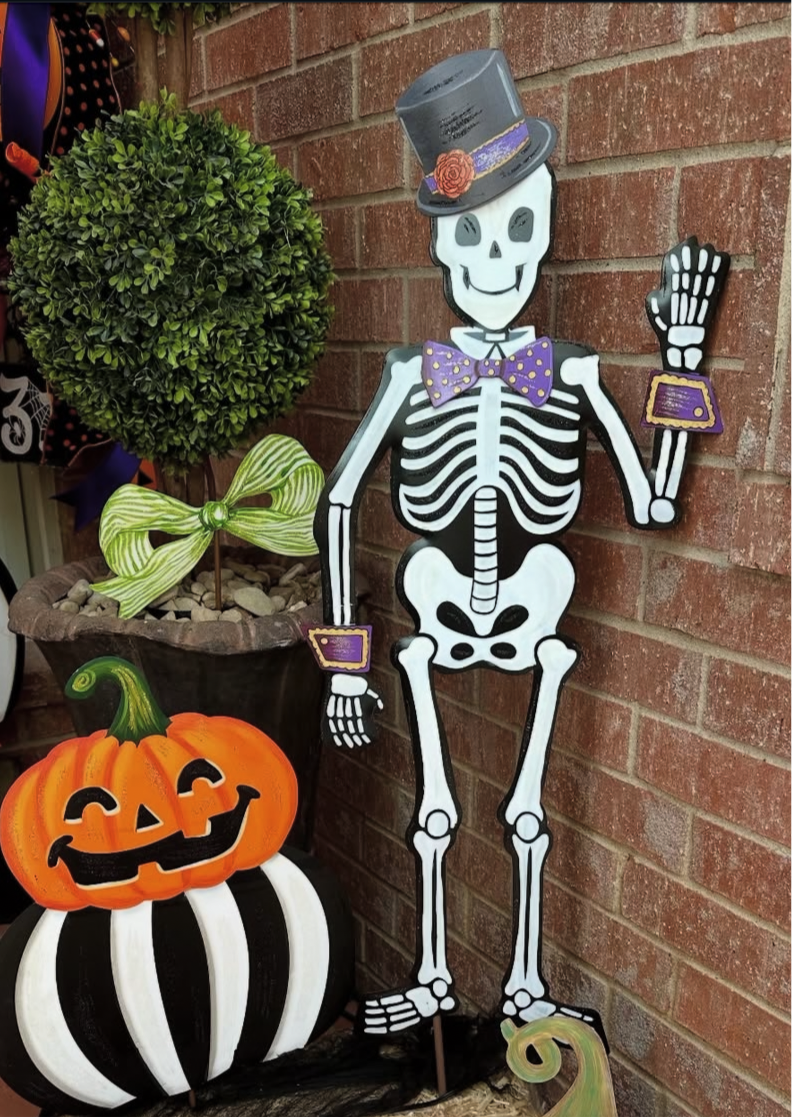 Large Tuxedo Skeleton Halloween Metal Outdoor Stake or Hang