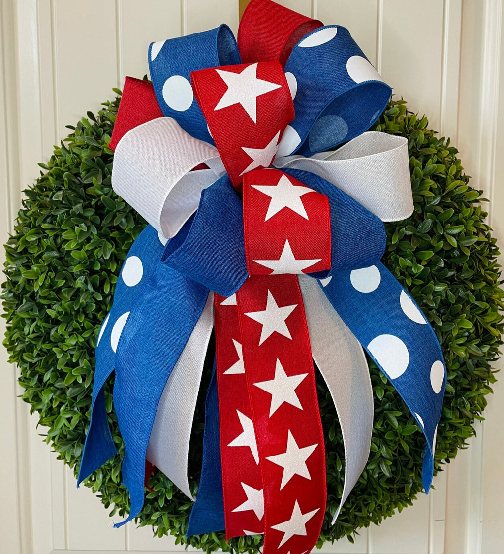 Americana: Red, White, and Blue Stars Polka Dots Bow