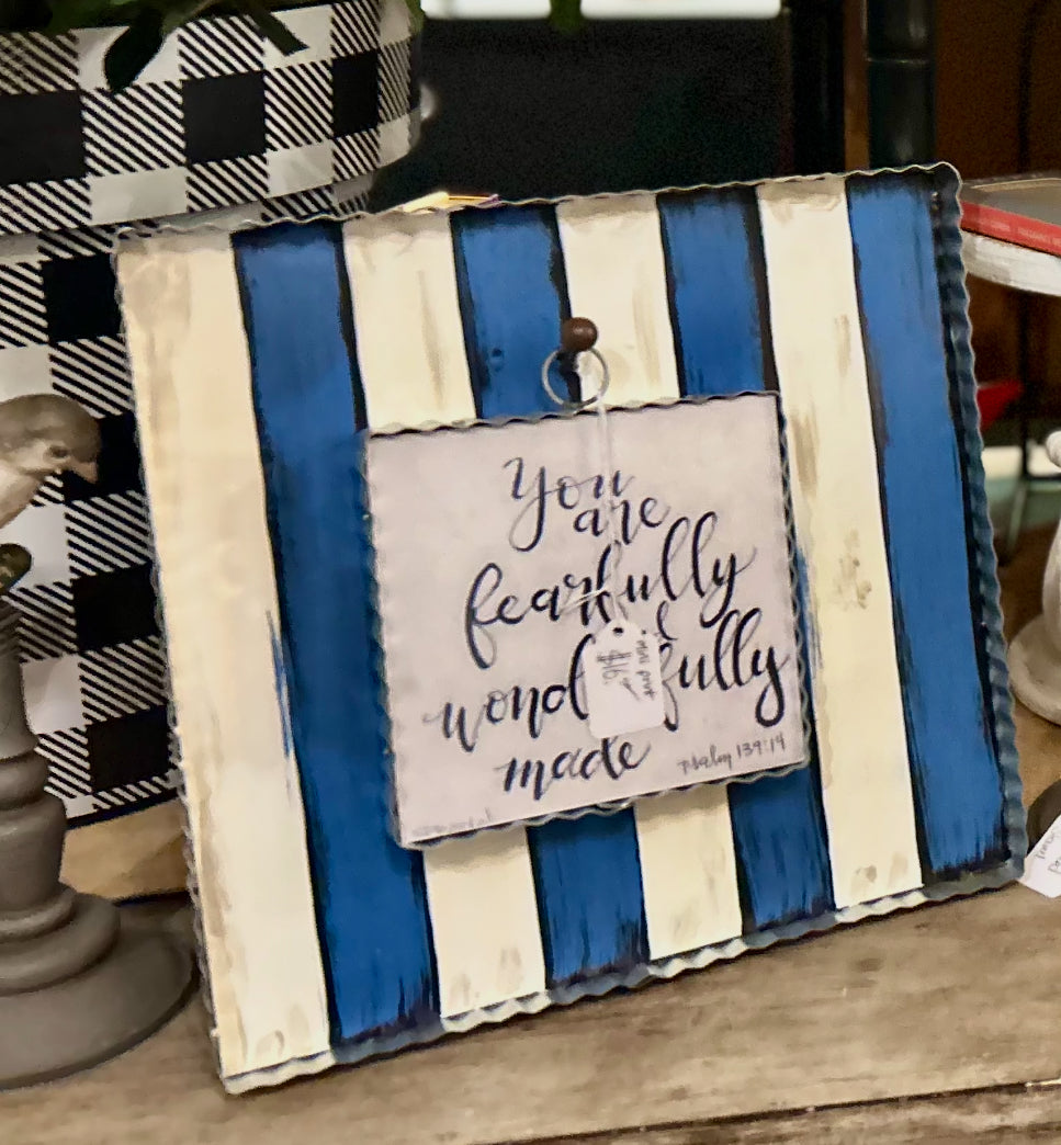 New! Blue and White Stripe Display Stand for Mini Prints or Charms Attached Easel on Backside