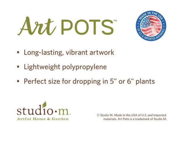 Our new, redesigned Art Pots are now made from durable polypropylene. Still printed in the USA, each pot features fade-resistant artwork around the entire Art Pot, including the rim. Create an easy gift-to-go by dropping in a 5" or 6" potted plant from your local garden center or a few small gift items from a shop in town. The beautiful design of these unique containers will delight family, friends, teachers, coworkers, and all the other special people in your life.