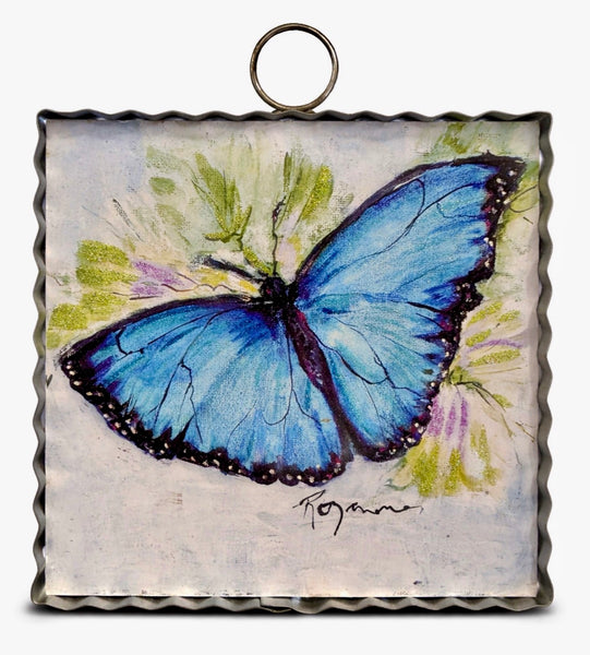 Blue & Black Butterfly Mini Print with Galvanized Frame in Shimmering Finish