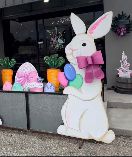 The White Easter Rabbit with Hot Pink Bow never looked so good and the impressive size of the 86”high rabbit is sure to catch people’s eye! This huge rabbit is ready for the easter season! The rabbit comes in a facing left or facing right direction, specify which one you want when ordering.