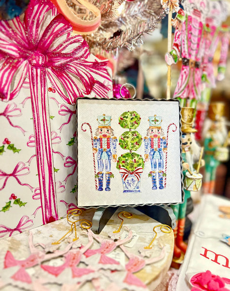 This adorable whimsical metal package in pink, red, green, and white is adorable by the tree, on the front porch, or place on the mantle!