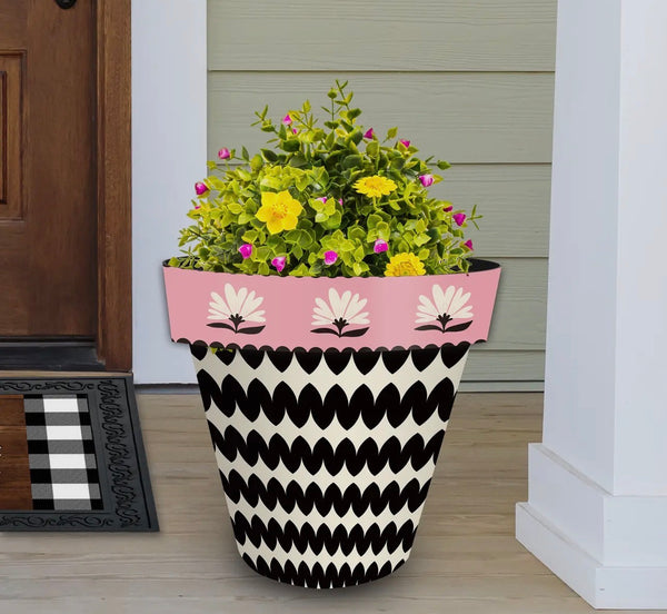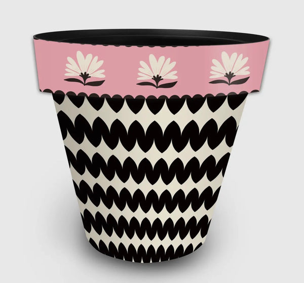 Pink, Black, and White Planter Pot with Floral Border