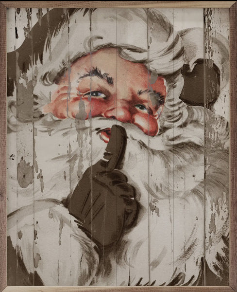 Santa Shh in Neutral Brown, Tan, & White with Wood Frame Art 8”x10”