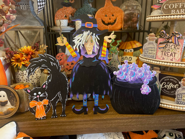 The adorable Black Cat will look great in the yard, a pot or urn on your front porch! It would look just as cute indoors on a hearth, mantle or table! Have fun with this New Piece….it pairs well with our Black & White stripe pumpkins on separate listings!