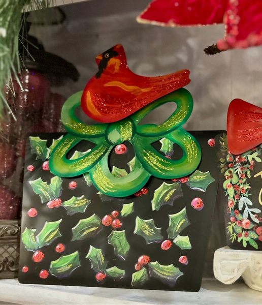 This Cardinal Gift Package in black, green, and red, is just too Cute!! They are great for outdoor use or inside under the tree or hearth!!
