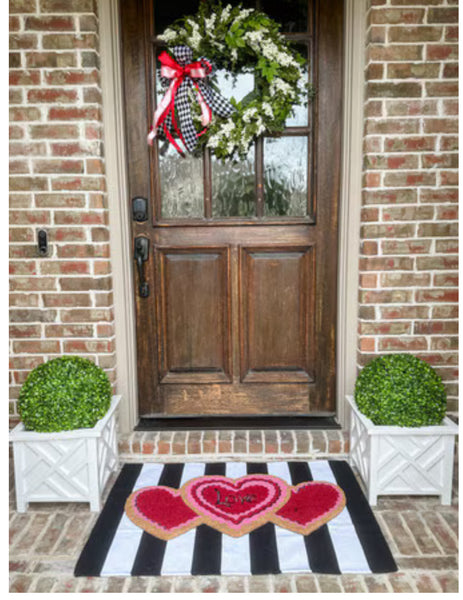 This rug is perfect for the Valentines lovers with adorable whimsical three hearts door rug. You can place this rug on its own or layer with another pattern.
