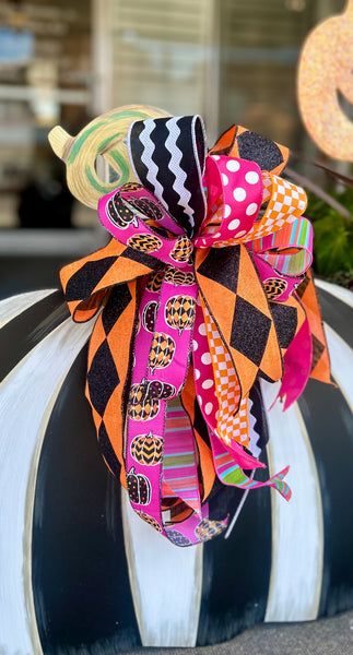 Whimsical Halloween Bow in colors of Black, Orange, Hot Pink, Aqua, White