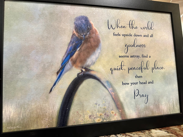 When the World Feels Upside Down and All Goodness Seems Astray, find a quiet, peaceful place, then bow your head and pray. 14”x20”
